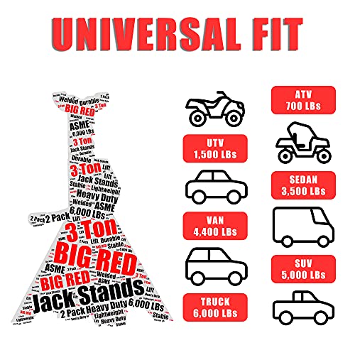 BIG RED T43202 Torin Steel Jack Stands: 3 Ton (6,000 lb) Capacity, Red, 1 Pair