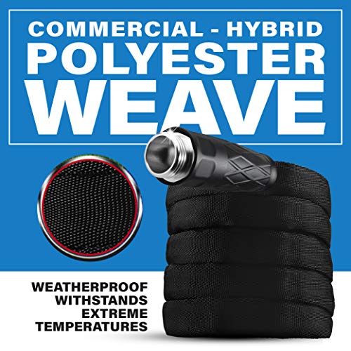Details: BIONIC FLEX Garden Hose is made from high performance MXZ-7 Fiber. Ultra-durable, yet lightweight it is burst, drag, and kink resistant! ?The hose has a 5/8 inch diameter, crush resistant aluminum fittings and has up to a 600 PSI burst rating. This anti-gravity, high performance MXZ-7 fiber hose can?t be beat at being kink resistant, burst resistant and drag resistant! Enhanced with a built-in stabilizer collar for better grip, ?BIONIC FLEX Garden Hose is 50% lighter than heavy-duty vinyl hoses. It is also non-expandable to provide a steady stream of water which gives you the best gardening experience.?FEATURES:?KINK FREE: The solid aluminum crush resistant fittings & stabilizer collar are engineered to withstand extreme force while the body of the hose is reinforced with special MXZ fiber that is memoryless, meaning it will lay flat, resist kinks, can coil easily and store effortlessly!?WEATHERPROOF: The Bionic Force has been built to withstand extreme temperatures. From sub-zero temps, the hose can be frozen in a block of ice -to- being left in the sun for days and everything in between, ensuring many years of reliable use!?NON-EXPANDABLE: The Bionic Force hose does not expand or retract, guaranteeing a steady and uninterrupted flow of water.?EASY TO STORE: The lightweight function makes it easy to carry or drag from one part of your yard to the next place. To store The Bionic Flex hose simply drain water from the hose when not in use.?ULTRA DURABLE LEAK RESISTANT: The revolutionary Bionic Flex hose is woven from an industry leading commercial grade hybrid polyester weave that is extremely durable and resistant to leaks, punctures, and extended drags over tough surfaces.??LIGHTWEIGHT: The unique micro-weave design makes the Bionic Flex extremely flexible & easy to maneuver around tight corners, trees and other obstacles while remaining 50% lighter than commercial hoses.??STAINLESS STEEL FITTINGS: The solid stainless-steel crush resistant fittings & stabilizer collar are engineered to withstand extreme force and keep its shape.??TOP GRADE RUBBER COLLARS: The ends of the hose is surrounded by an ABS plastic high resistance collar with an ergonomic design so you can attach to your water spout and nozzle with ease.??EASY STORAGE: The lightweight hose folds flat for easy storage without compromising on quality as the body of the hose is reinforced with MXZ fiber that is memoryless, meaning it will lay flat, resist kinks, can coil easily and store effortlessly.??HIGH PERFORMANCE ? inner diameter is a large 3/4 of an inch which allows for a powerful stream and the superior 500PSI burst strength s trusted performance and long life.??