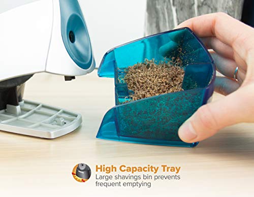 Details: Designed to be compact, light, and efficient for the typical home or office user. Created with the home and office users in mind, its space-saver feature allows it to fit perfectly in any space and look great with its modern twist. It may be small, but it has a powerful motor you can rely on to operate stall-free. The high capacity, easy clean shavings tray will eliminate your frequent trips to the waste basket. And keeping your safety in mind, the shavings tray has the added benefit of safely preventing operation when the tray is removed. Expect precision and clean sharpening with the HHC Cutter Technology, which extends cutter life by 4x*. All completely built for personal convenience. 7 year warranty