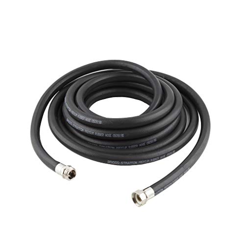 Details: Briggs & Stratton hoses are heavy-duty, resist kinking, stay flexible in EXTREME cold and can be used with hot water. 5/8-inch diameter, withstands hot water up to 200-degree F, coil easily ? flexible to -25-degree F. Durable 100-percent rubber cover stays flexible even in temperature extremes. Engineered for commercial, residential and recreational use. Made in the USA of US and Global parts.
