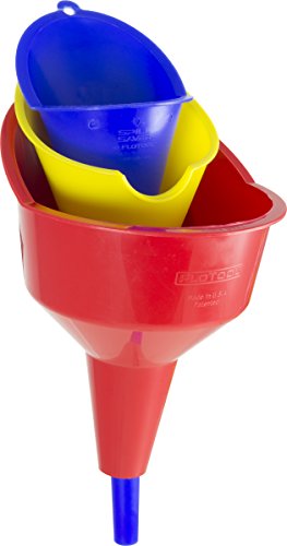 Details: FloTool, by Hopkins Manufacturing, offers the most comprehensive and highest quality offering of fluid handling products. Driven by innovative, no-mess product solutions, whether you’re changing your oil, topping off the antifreeze or checking all your automotive fluid levels, FloTool has the right application. FloTool’ s Super Multi-Purpose Funnel is perfect for transmissions, oil, and other engine fluids. FloTool introduces this new 3-piece funnel set that will make all of your fluid application processes a breeze. These three very different funnels will ensure that you have the tool to get the job done right..