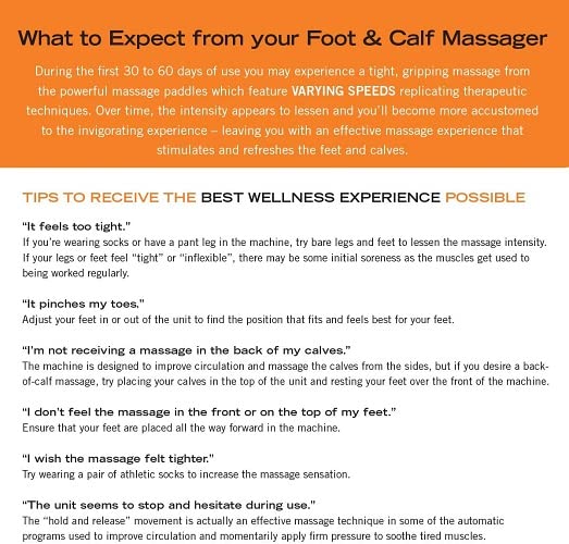 - Massage the feet and calves, relax the whole body. Our patented CirQulation Figure-Eight Technology, with heat, circulates blood flow in your foot and calf, offering a deep kneading Shiatsu foot massage, and deeply-penetrating vibrating relief, bringing your body back into its natural equilibrium which promotes the body’s natural healing power.