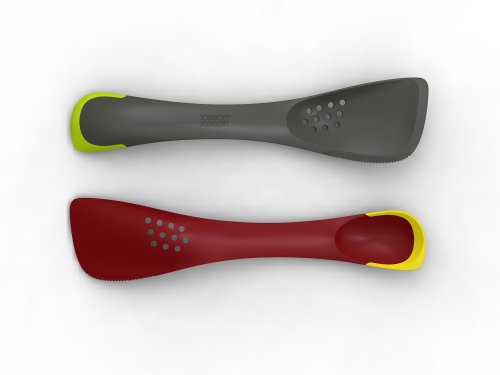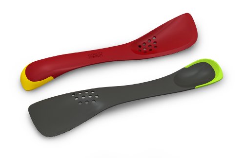 Details: Eco-friendly and innovative, the Joseph Joseph Unitool performs a slew of different tasks in the kitchen, making it one of the most versatile utensils around. Fabricated from gray nylon, it does the work of a slotted spoon, turner, cutting tool, solid spoon, and spatula. The tool has a weighted handle and foot so that the end doesn’t touch the counter top, helping to prevent messes and cross contamination of food. With soft-grip, ergonomic handles for comfort and a dishwasher safe construction, this tool is a great addition to any kitchen. 11-9/10? L x 2-7/10? W x 9/10? H
