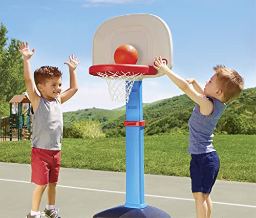 Details: The Little Tikes easy score basketball set, designed for children 18 months to 5 years old, introduces kids of all abilities to the game of basketball and competitive play. The height can be adjusted to six settings between 2.5 and 4 feet to accommodate even the littlest hoop Star. The oversize rim and kid-size basketball ensure easy scoring and help kids develop hand-eye coordination while providing the right challenge level. Before play, add sand to the base for stability. This product requires assembly.