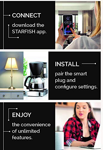 - WIFI SMART PLUG: 2.4 GHz WiFi enabled (no hub required) plug offers secure, smart appliance control of your home by voice or Starfish mobile app compatible with Siri, Alexa, Google Assistant, and SmartThings