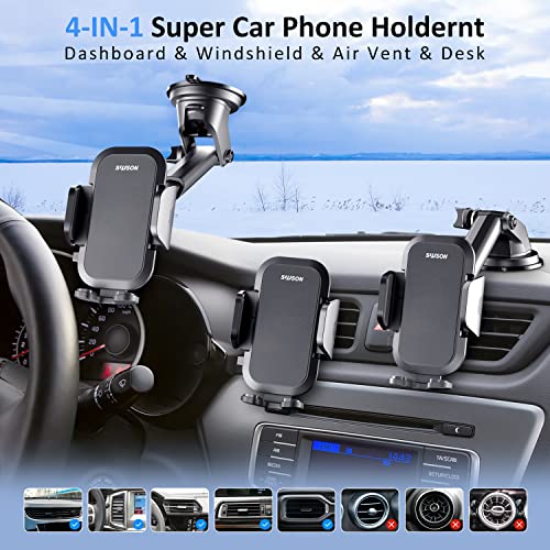 SUUSON Phone Holder for car -3in1 Long arm car Phone Holder Mount, Suitable for car Dashboard/Windshield/Vent, car Adjustable Phone Holder, Compatible with All Smart Phones and Cars